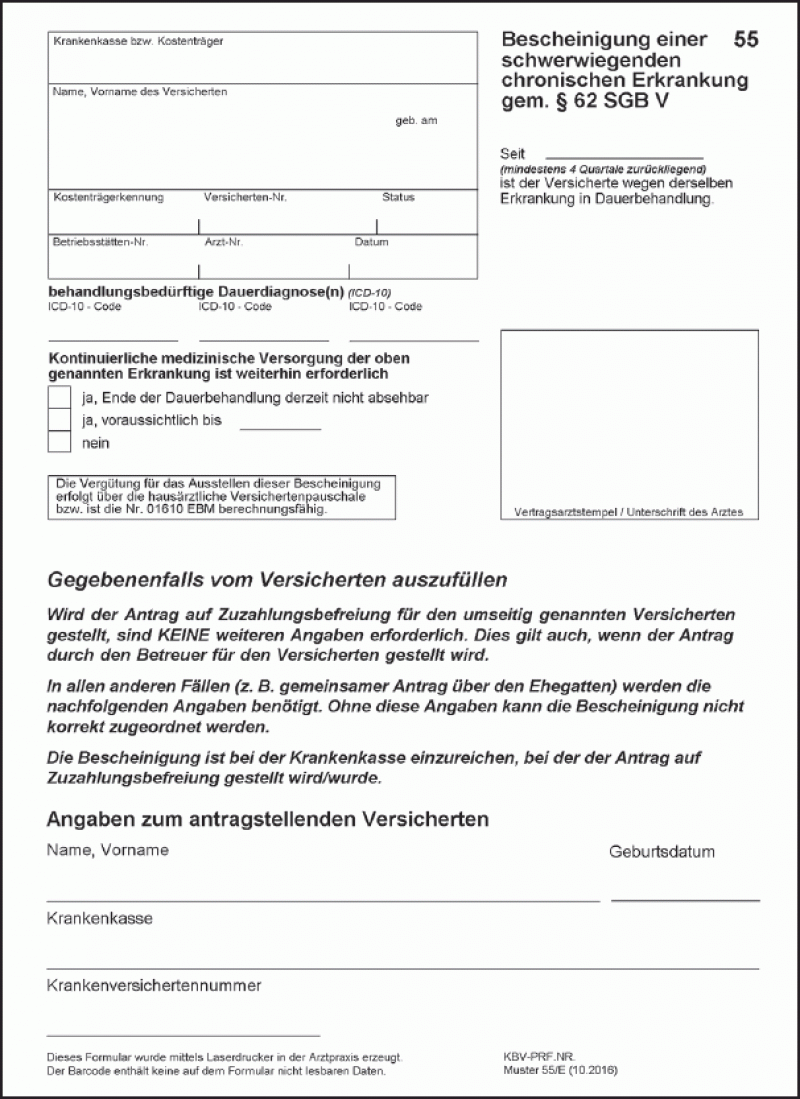 Einen vordruck, das sogenannte muster 55, erhalten sie in ihrer arztpraxis.